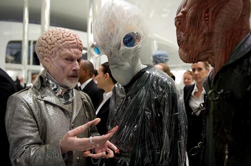 Baker's work, on the other hand, is much more subtle. The seven time Oscar winner has designed over 100 new aliens for this movie, many of which only appear on screen for a few seconds, but he's almost singlehandedly responsible for making the MiB Headquarters such an iconic location because of all the craziness going on in the background. His crowning achievement this go-around is Jemaine Clement's Boris The Animal makeup, rendering the comedian almost unrecognizable. Unfortunately, all this makeup may have hindered Clement's performance, as his Boris is completely devoid of everything I assumed they cast him for in the first place: wit, sarcasm, comic timing, etc.
