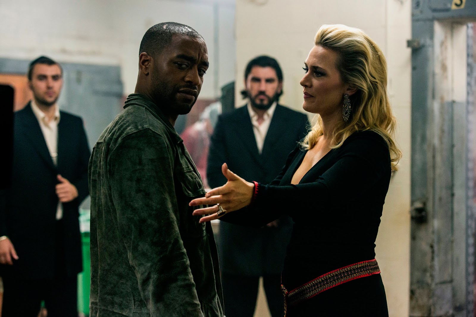 This movie starts out so well that the bank robbery that plays over its opening credits ranks among the best I've ever seen committed to film. Ex-special forces soldier Michael (Chiwetel Ejiofor) leads a five man team — his former spec ops buddy Russell (Norman Reedus), Russell's younger brother Gabe (Aaron Paul), and two dirty cops, Marcus (Anthony Mackie) and Jorge (Clifton Collins Jr.) — as they bypass the cash in the vault and retrieve a safety deposit box for the Russian mob. It's a close call but they get away, and that was supposed to be all there was to it...until mafia leader Irina (Kate Winslet) refuses to pay them for their services, blackmailing them into another job that sounds nearly impossible to achieve. In order to pull it off, they'll need to orchestrate a 999 (the police code for "officer down") so the cops are distracted on one side of Atlanta while the gang breaks in to a heavily guarded Homeland Security building on the other.